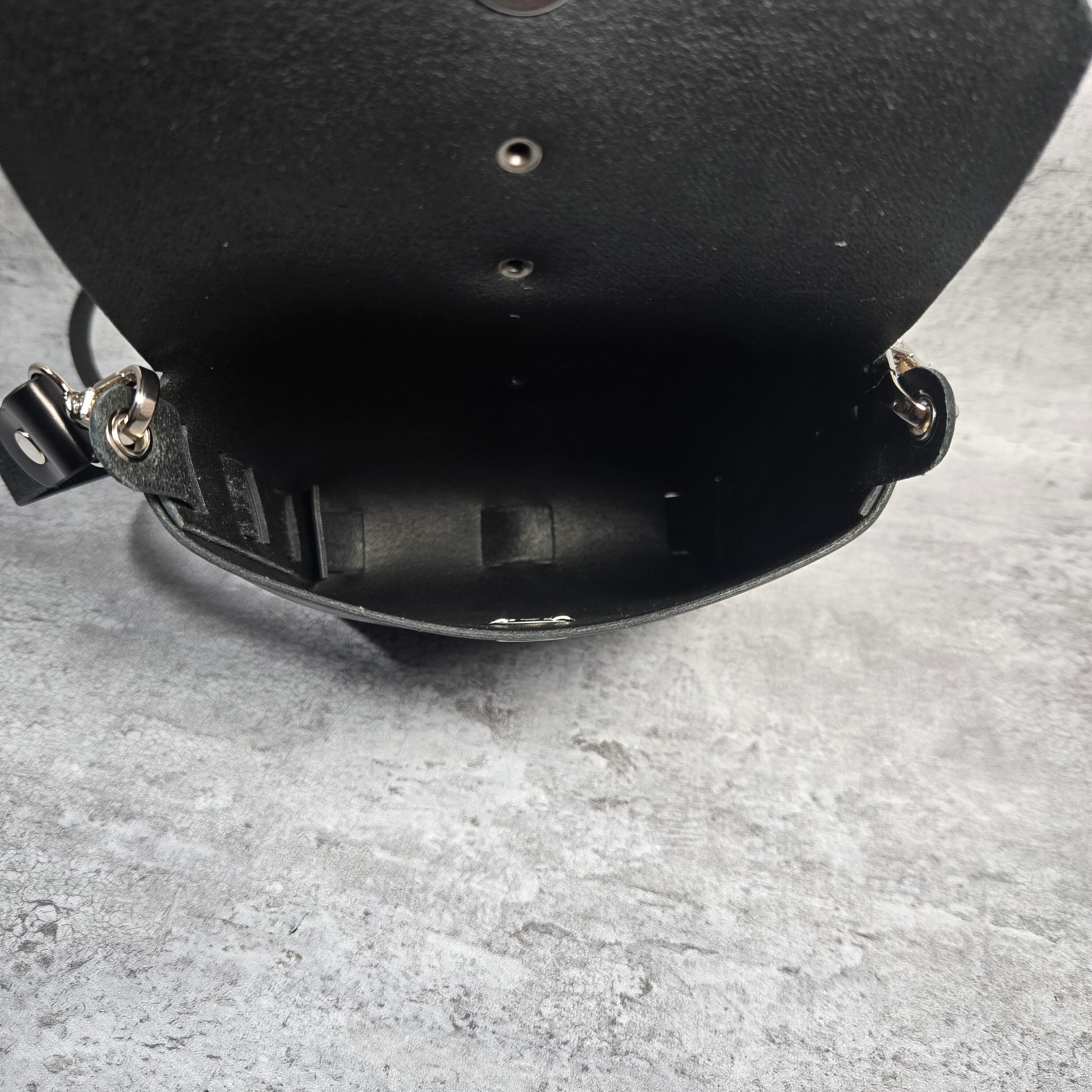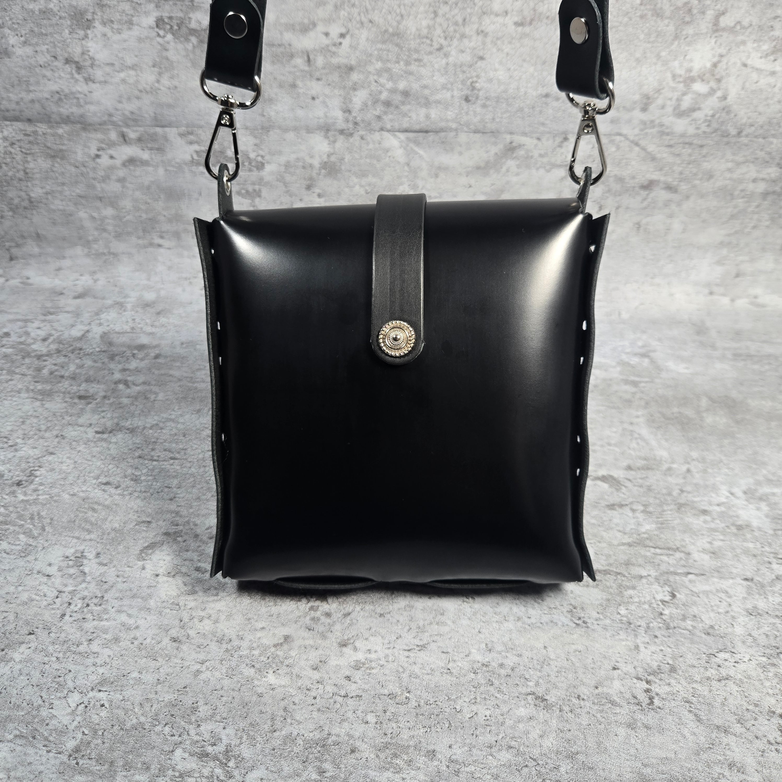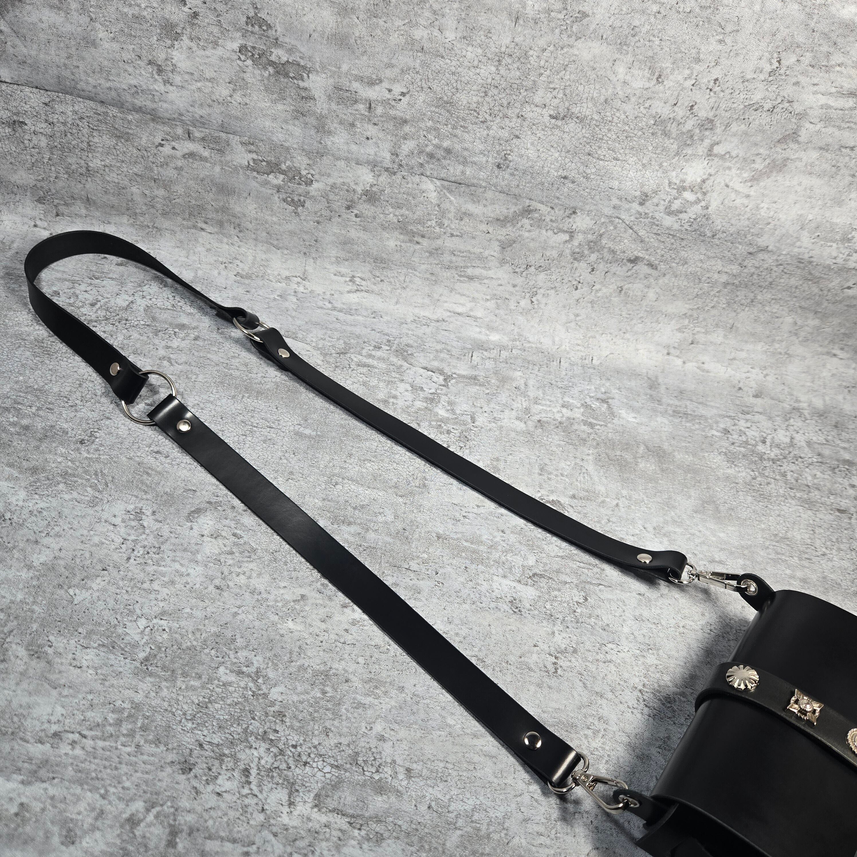 フロントのマグネット留め具+ベルト剣先デザインがさりげないアクセントに。
