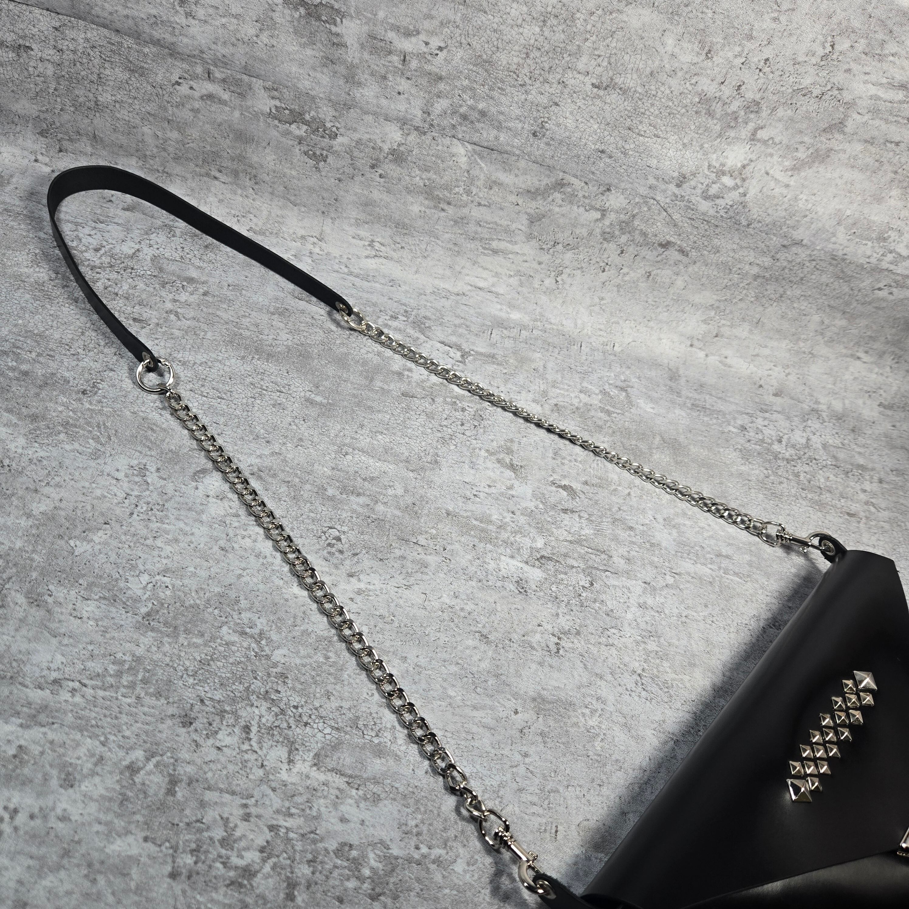 ショルダーは半分チェーン、肩部分のみレザー仕様で、見た目の軽やかさと肩掛けの快適さを両立。