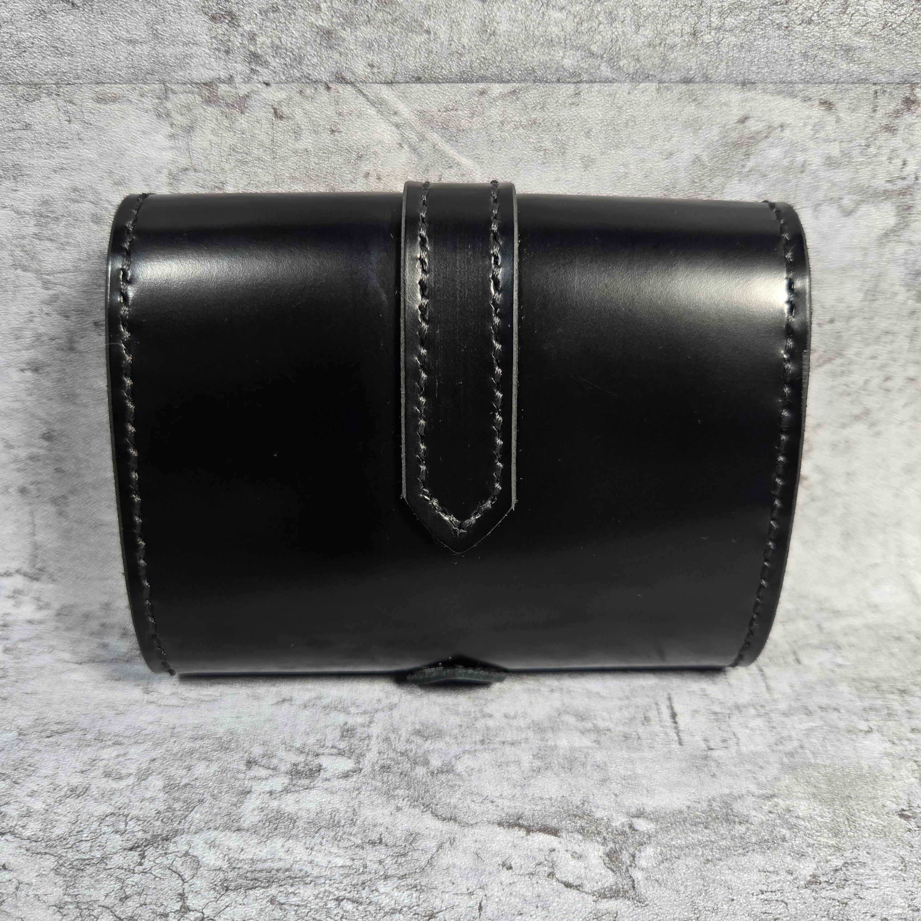 上質なレザーと存在感のある金具を組み合わせた、コンパクトなレザーウォレット。