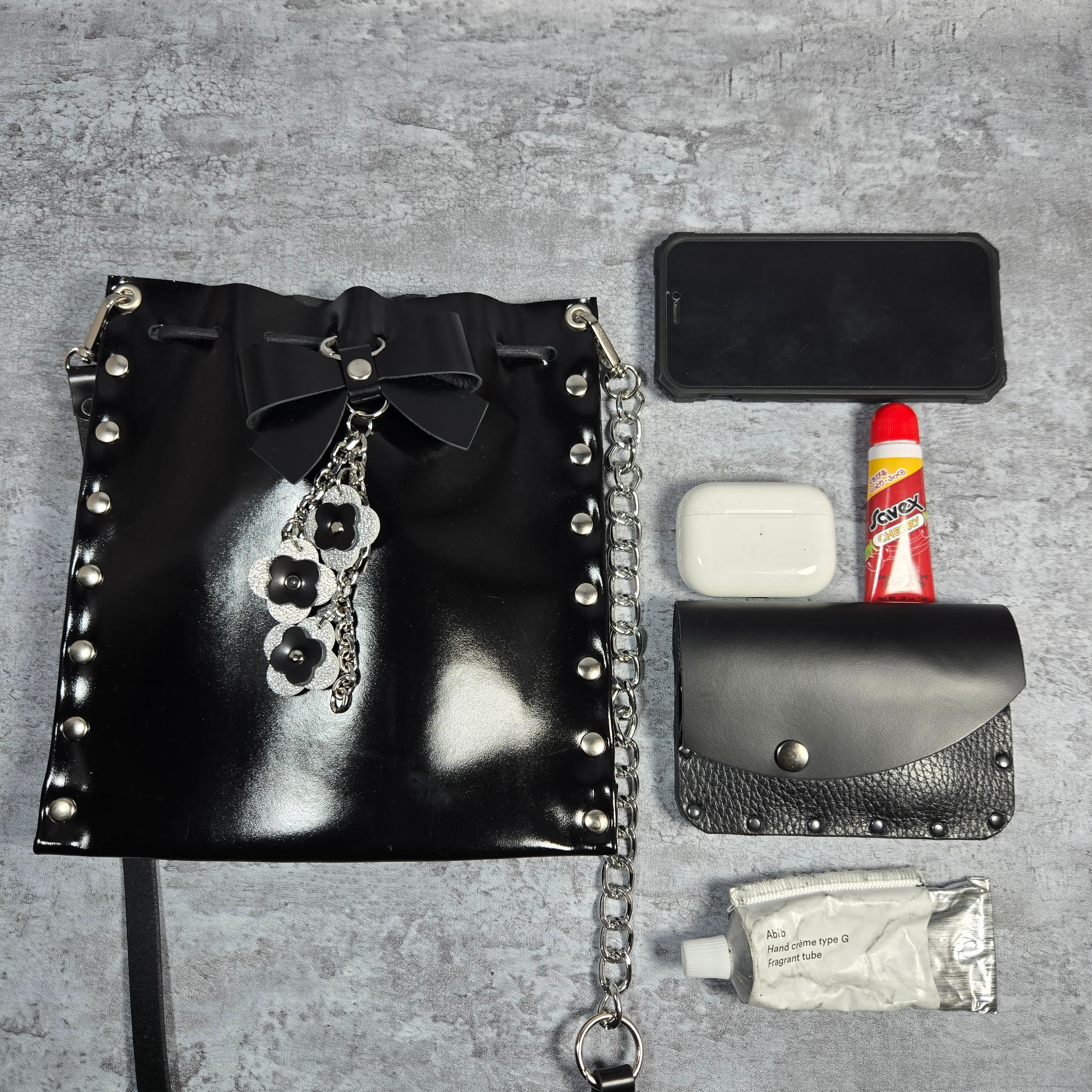 ✔ レザー×チェーンのコントラスト